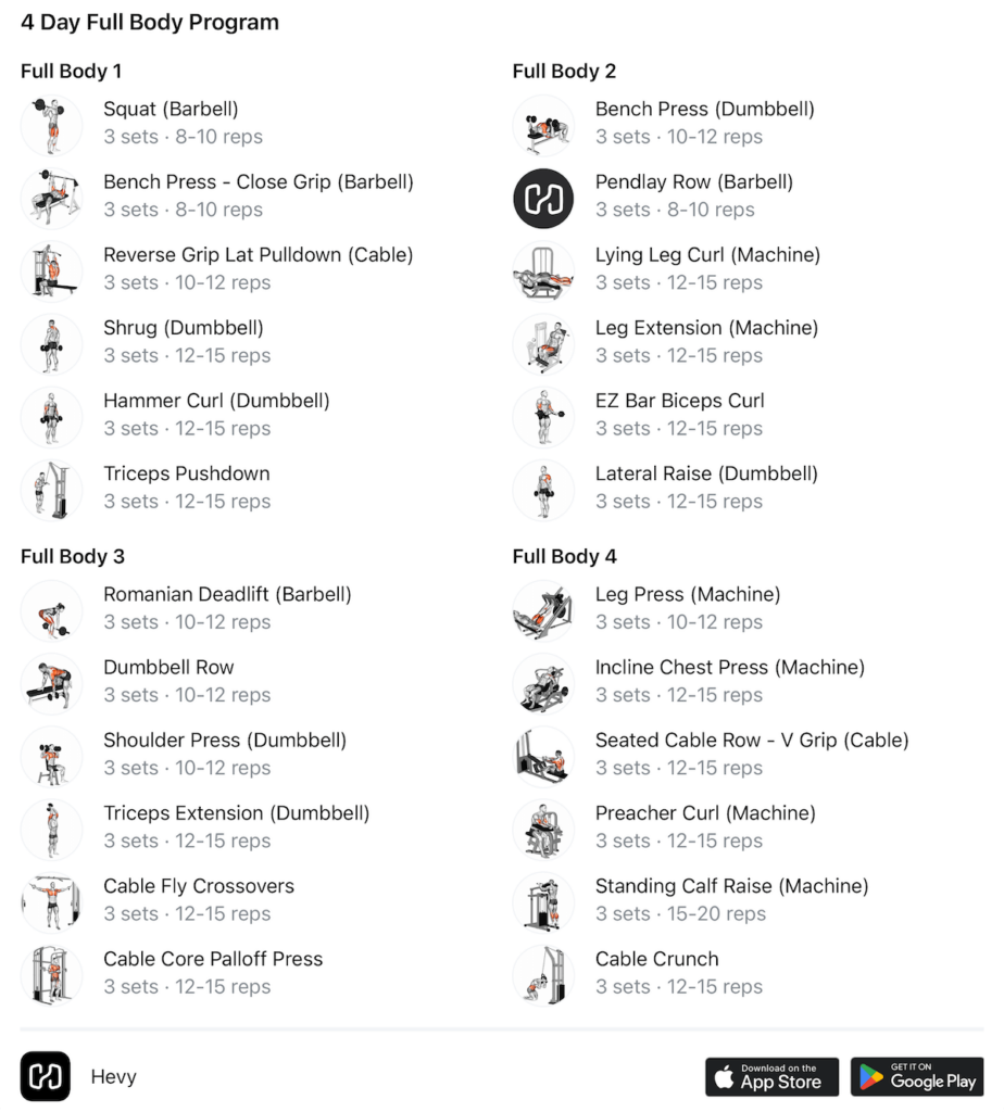 Here is what a sample 4-day full-body plan could look like: